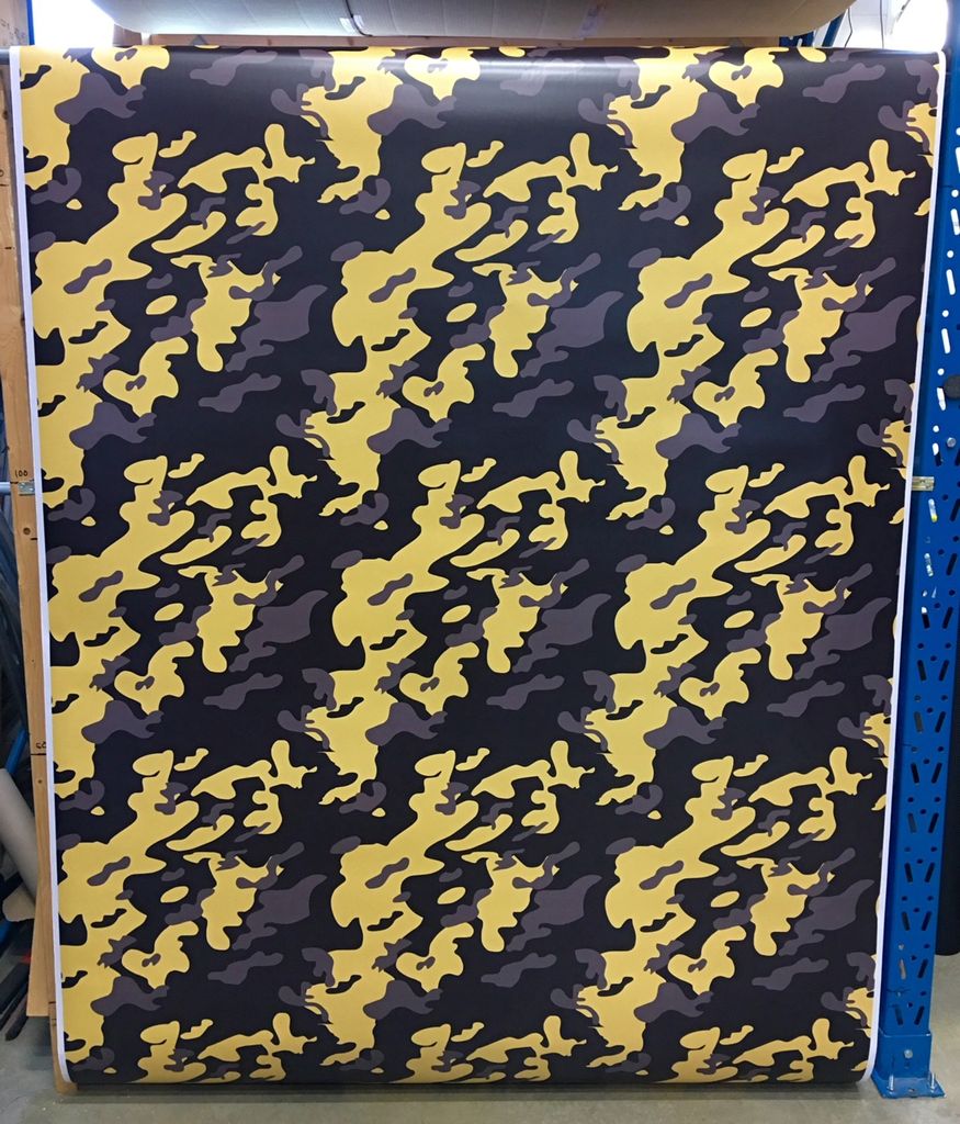 Gul kamouflagevinyl kommer göra dig synlig eller kanske osynlig på vägarna! Brutalt coolt mönster som är väldigt inne och som passar de flesta fordon tack vare ett mönster som inte kräver någon extrem mönsterpassning.